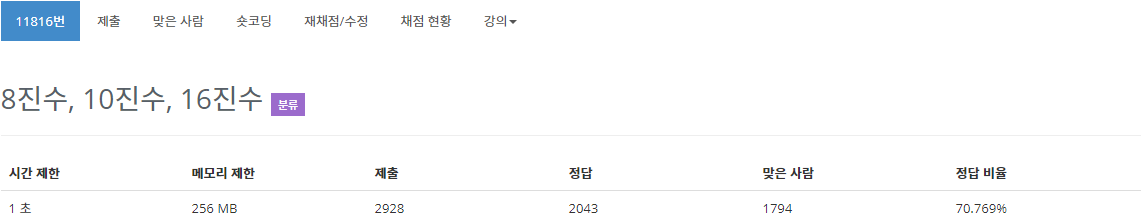 11816번: 8진수, 10진수, 16진수