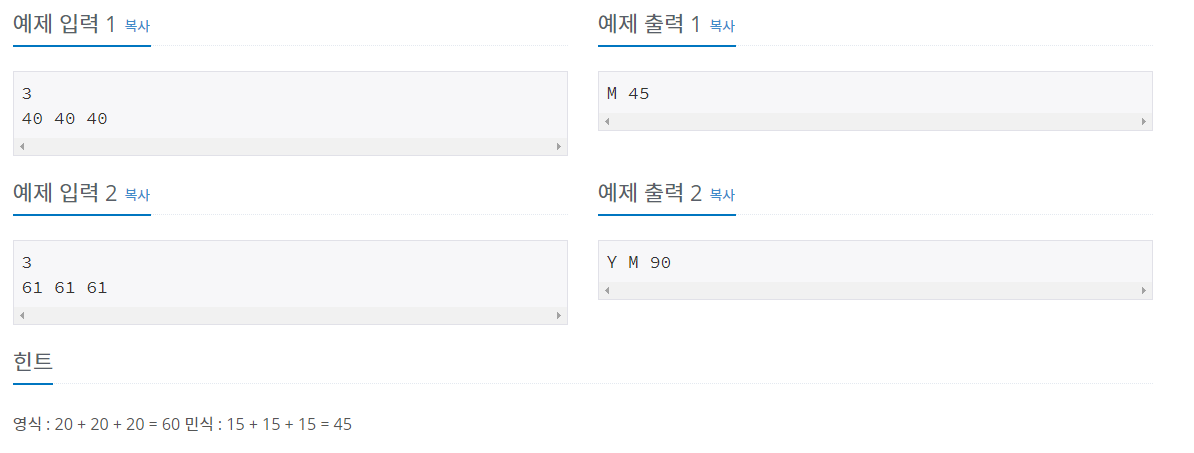 영식은 Y로, 민식은 M으로 출력한다.