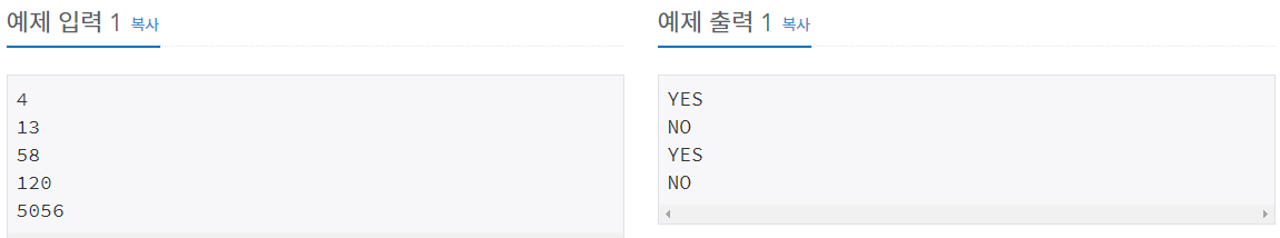 좌우 대칭이 되면 YES를 아니면 NO를 한 줄에 하나씩 출력한다.