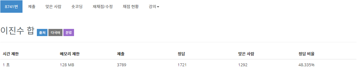 출처 링크 :www.acmicpc.net/problem/8741