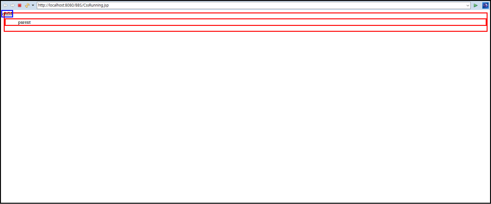 그 결과 위와 같이 html이 아닌 자신의 부모 태그 기준으로 위치를 선정하게 되어 parent의 (0.0) 위치에 child라는 문자가 들어간 것을 확인할 수 있다.