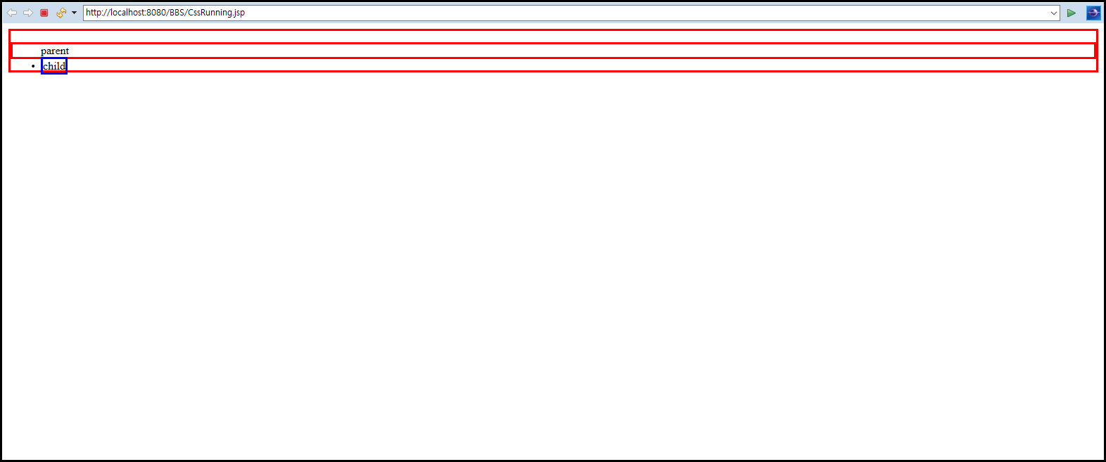 추가적으로 아래와 같이 child의 부모 격인 ul(parent)에도 똑같은 코드를 입력한 결과를 살펴보도록 하자.