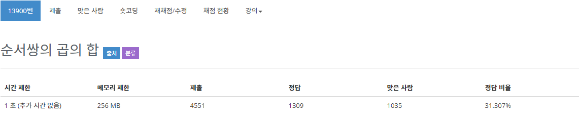 출처 링크 : www.acmicpc.net/problem/13900