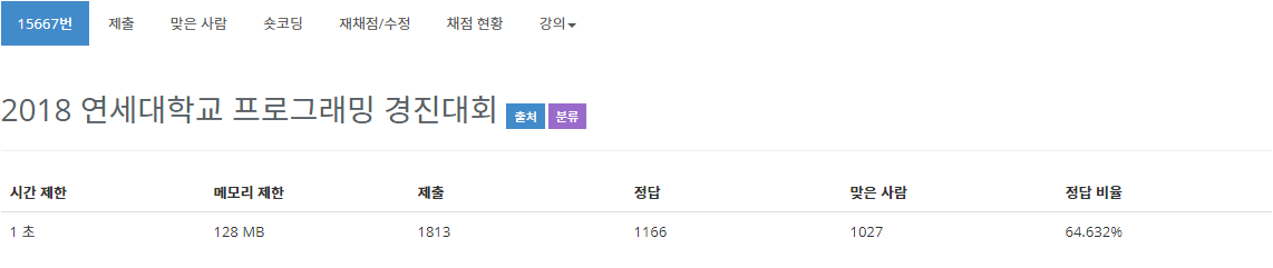 15667번: 2018 연세대학교 프로그래밍 경진대회