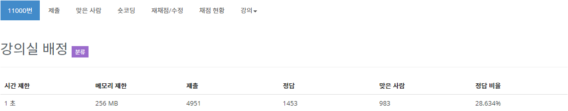 //i 번째 강의의 시작시간보다 같거나 작으면