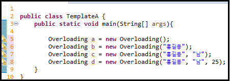 우선 오버로딩이라는 단어의 뜻에서 유추할 수 있듯이 기존의 기본 생성자를 다양한 방법으로 객체를 생성할 수 있도록 매개변수를 달리하여, 다수의 생성자를 선언하는 것이다. ( 말이 좀 어려울 수 도 있는데, 코드를 보면 쉽게 이해할 수 있다.)