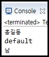 객체 생성시 넣어주었던 "홍길동"과 sex의 초기값으로 설정해둔 "default"가 첫 줄과 다음 줄에 출력된 것을 확인할 수 있다. 이후 ov.sex = "남"으로 변경해준 값도 오류 없이 정상적으로 출력되었다.
