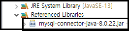 오늘은 mysql 연동 시 발생하는 문제에 발생에 대하여 알아보겠다. 우선적으로 아래와 같이 자신의 프로젝트에 Build Path를 통해 Referenced Libraries에 정상적으로 mysql-connector jar 파일이 들어갔는지부터 확인 바란다.