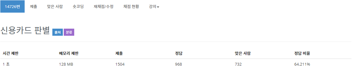 다음 공식을 이용해 주어진 신용카드의 번호가 유효한지, 유효하지 않은 지 판단해라.