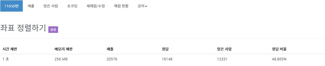 출처링크: www.acmicpc.net/problem/11650