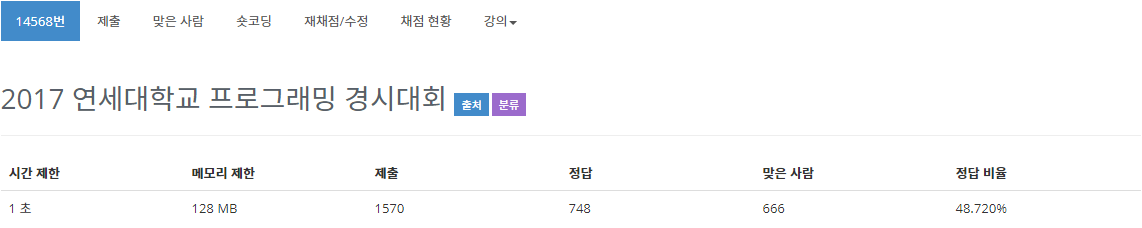 14568번: 2017 연세대학교 프로그래밍 경시대회