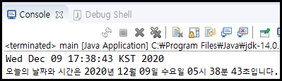 위와 같이 day라는 객체를 선언해준 후 출력해주면, 아래와 같이 현재 시간에 대한 정보를 확인할 수 있다. 다만 해당 시간 정보가 들어간 문자열을 String으로 활용하고 싶으면 toString으로 해당 문자열을 받아 새로운 String 객체에 담아주면 된다.