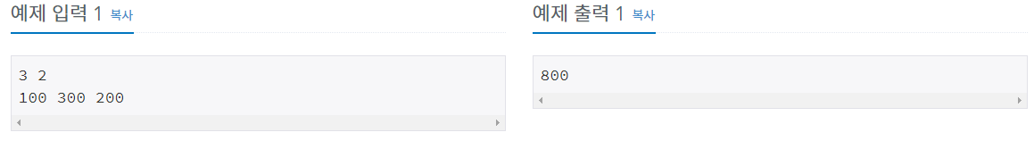 첫째 줄에 정수 n과 k(1 ≤ k ≤ n ≤ 3 · 105)가 주어집니다.