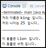 integrated it = new integrated("king", 25, "Lion", "수컷");