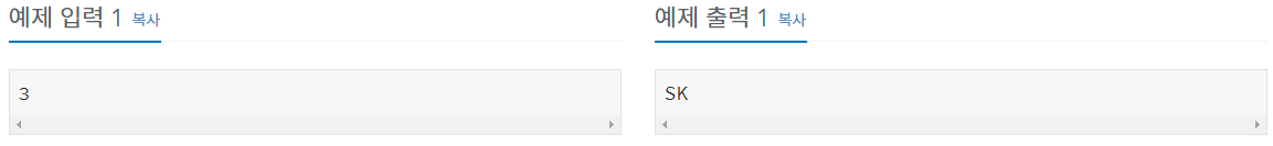 상근이가 게임을 이기면 SK를, 창영이가 게임을 이기면 CY을 출력한다.