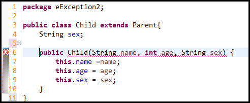 하지만 위와 같이 생성자에서 컴파일 오류가 발생하게 된다. 분명 extends로 Parent를 물려받아 필드 name / age를 사용할 수 있는데, 실제 코드에서는 이를 허용하지 않다.