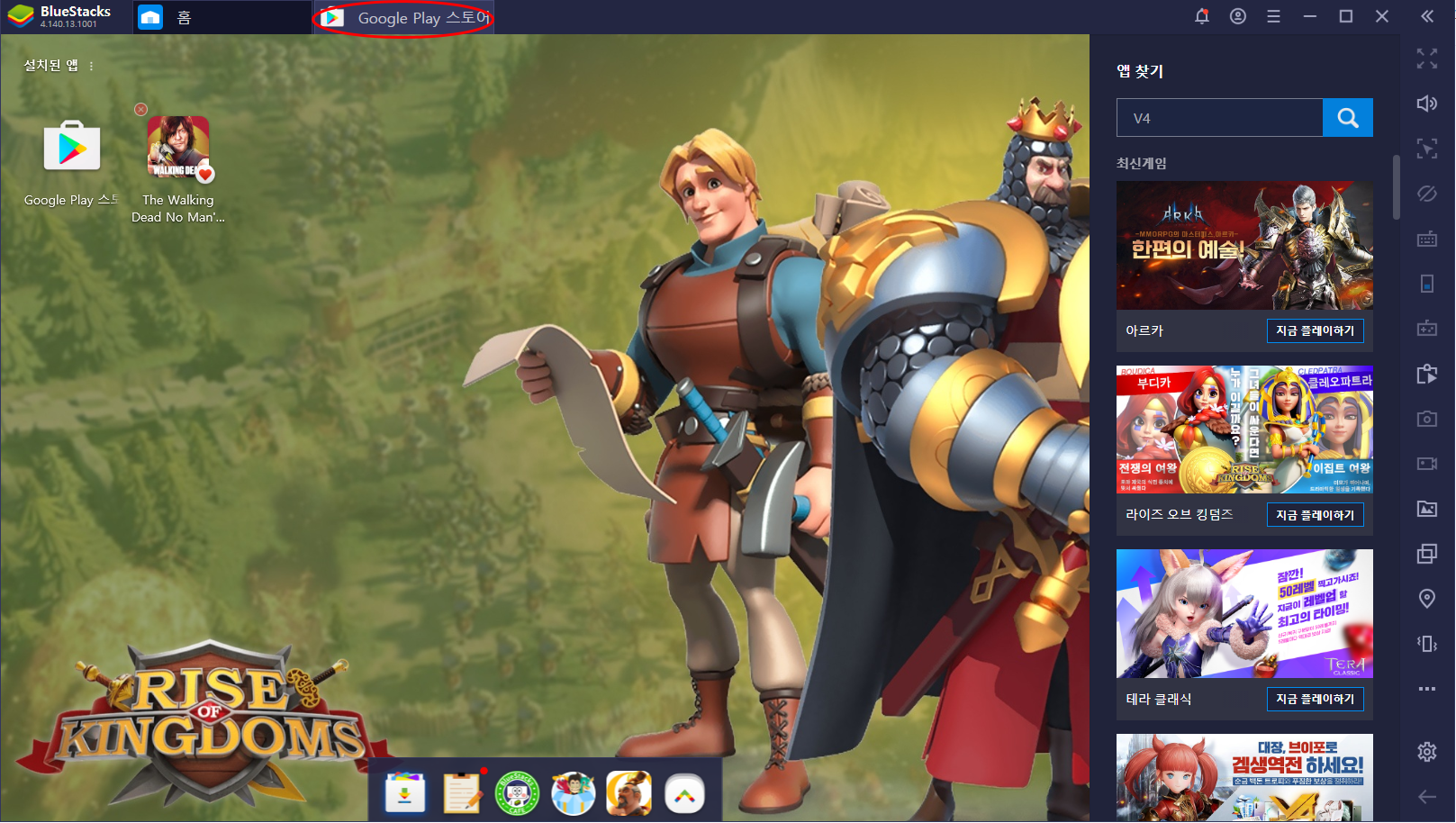 블루스택의 다운로드가 완료될 경우 메인 홈에서