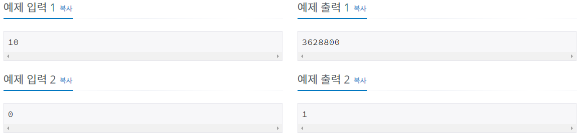 출처링크: www.acmicpc.net/problem/10872