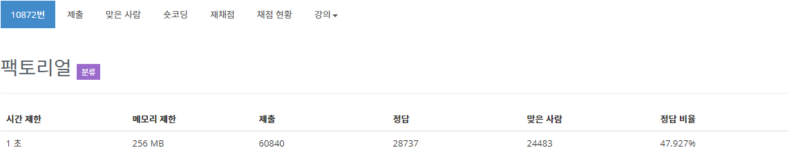 10872번: 팩토리얼
