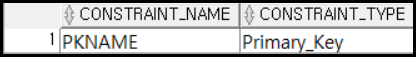 이후 테이블의 제약조건을 확인하면 테이블 생성에서 만든 제약조건명과 함께 기본키로 설정되어 있는 것을 확인할 수 있다.