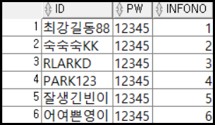 INSERT INTO CLIENTJOIN VALUES( '어여쁜영이', '12345', 6);