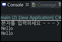 System.out.println("문자를 입력하세요 - - - > ");