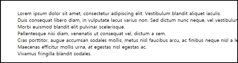 모든 개행 문자 / space / tab들이 병합되며, 브라우저 끝에서 자동 줄 바꿈을 해준다. css에서의 디폴트 값으로 적용된다.