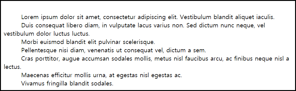 모든 개행 문자 / space / tab들이 병합되지 않고 유지되며, 자동 줄 바꿈은 되지 않는다.
