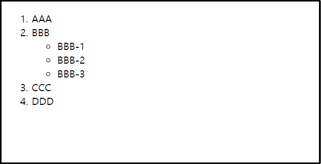 때문에 #outset>li 라고 입력 시 어떠한 태그도 영향을 받지 않게 된다. 그 이유는 #outset의 자식은 ol이다. 여기서의 li굳이 표현한다면 #outset의 손자태그가 되기 때문에 해당 코드는 아래와 같이 color 변경 없이 나타난다.