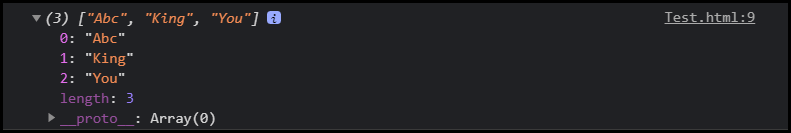 var name1 = new Array("Abc", "King", "You")