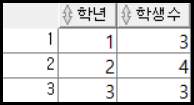 SELECT GRADE 학년, COUNT(GRADE) 학생수 FROM SEE_INFO GROUP BY GRADE;