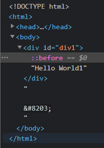 after는 선택된 요소의 뒤에 붙기 때문에 elements 영역에서 확인해보면 해당 div1이 품고 있는 텍스트 뒤에 ::after 표시가 생긴것을 확인할 수 있다.