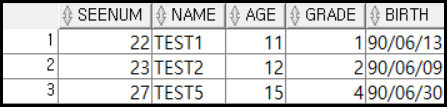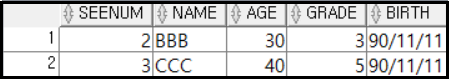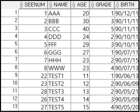 예제로는 SEE_INFO 테이블을 이용해서 사용해도록 하자. 테이블의 내용은 아래와 같다.