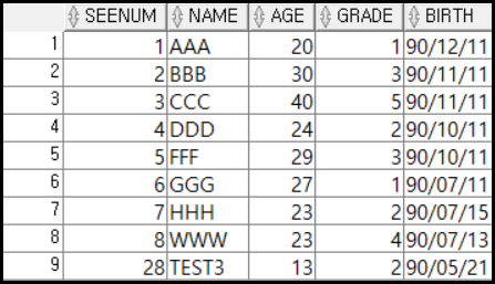 사용할 테이블은 SEE_INFO로 내용은 아래와 같다.