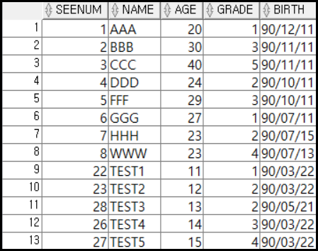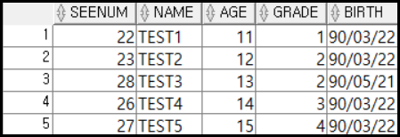 아래는 예제로 사용될 테이블인 SEE_INFO 테이블이다.