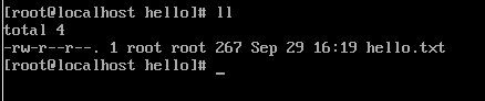우선 위는 예제로 사용할 hello.txt의 정보이다. 권한을 확인하는 방법은 "ls -l"과 같은 명령어를 사용해서 해당 파일의 정보를 화면에 출력하면 된다.