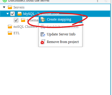 자신이 변환하고자 하는 소스DB의 스키마 정보 또는 데이터베이스 정보 우클릭 후 Create mapping 버튼을 하면 맵핑이 진행된다.