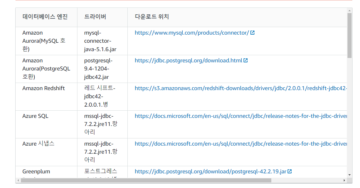 드라이버 패스에 해당 DB에 맞는 드라이버를 넣어 주어야 한다. 아래 이미지와 같이 지원되는 드라이버 정보를 다운로드후 등록해 주어야 한다. 드라이버 정보는 아래의 링크를 참고하자.