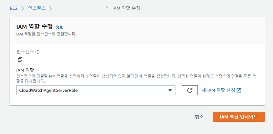 cloudwatch에 연동할 ec2에도 해당 권한을 넣어 준다.