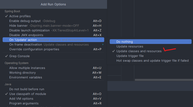 on frame deactivation -> update classes and resources 선택 하여 설정