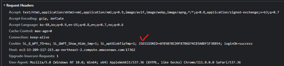 위의 예시를 보면 모두 동일한 JSESSIONID를 가지고 통신하는 것을 확인할 수 있다.