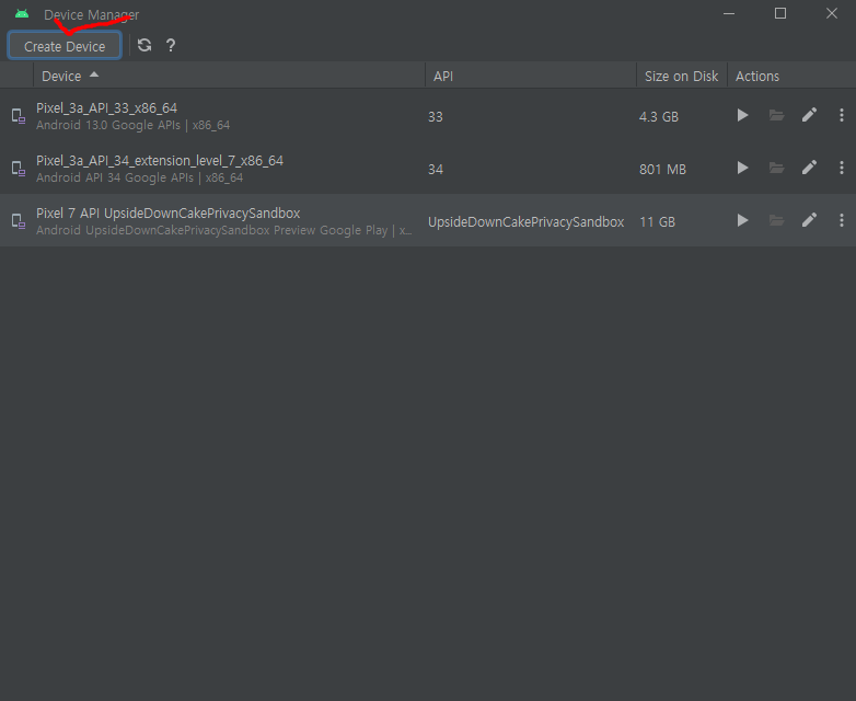 Create Device를 클릭하고,