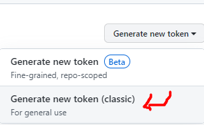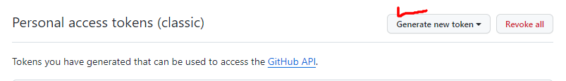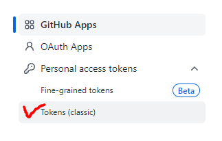 이후 Personal access tokens 중 classic 토큰을 클릭한다.