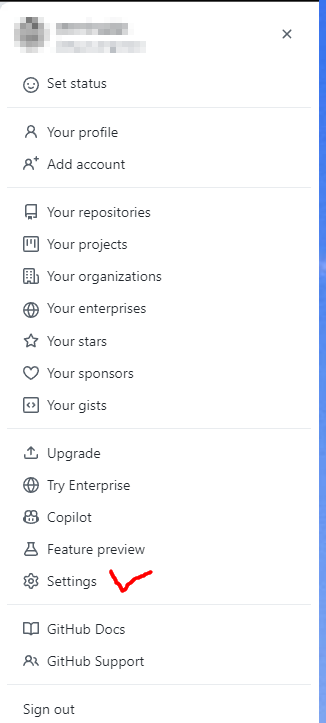 아이콘 클릭 시 나오는 드롭 박스 형태의 메뉴 중 Settings를 클릭한다.