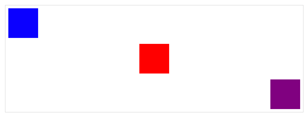 실제 위의 코드를 실행하면 아래와 같이 표현된다. 여기서 파란색 div는 좌측 보라색 div는 우측에 따로 정렬시켜야 한다고 가정해 보자.
