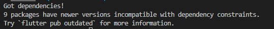 위의 명령어 실행 후 다시 flutter pub get으로 라이브러리들을 불러오면 오류 없이 실행되는 것을 확인 할 수 있다.