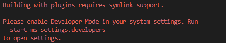 flutter 라이브러리들을 가져오는 도중 아래와 같은 에러가 발생했다. 이는 ms-setting을 윈도 내에서 시작하지 않아 발생하는 문제이다.