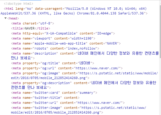 네이버 메인 사이트 내에서 F12를 눌러보면